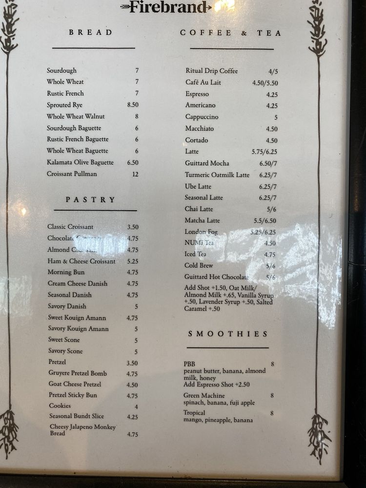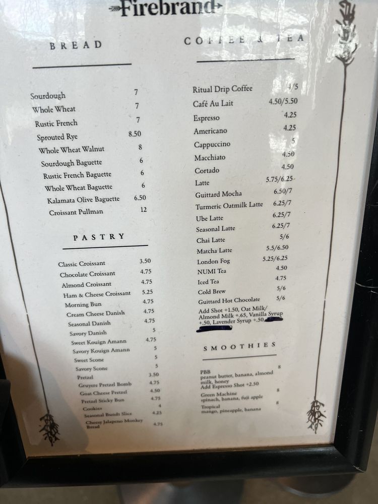 Firebrand Artisan Breads, located in Oakland, offers a wide array of delicious pastries and bread. The menu includes treats like chocolate croissants, sausage and egg croissants, and pumpkin flavored cheesecake. Customers rave about the quality of the bread, with reviews praising the Sourdough Batard and Walnut Wholewheat Artisan bread. The cozy atmosphere and friendly staff add to the overall dining experience. With options for vegan and vegetarian diets, Firebrand Artisan Breads caters to a variety of preferences. The standout dishes include the pain au lait pull apart bread, croissant loaf, and Gruyère pretzel. Don't miss out on their amazing coffee and seasonal pastries, making it a must-visit spot for bakery enthusiasts and coffee lovers alike.